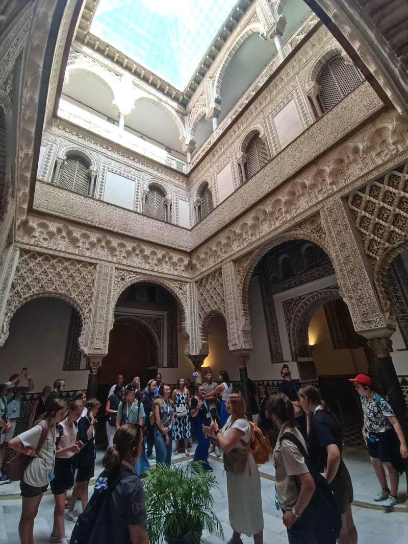 • Uczniowie ena tle ekspozycji przedstawiającej średniowieczną broń.