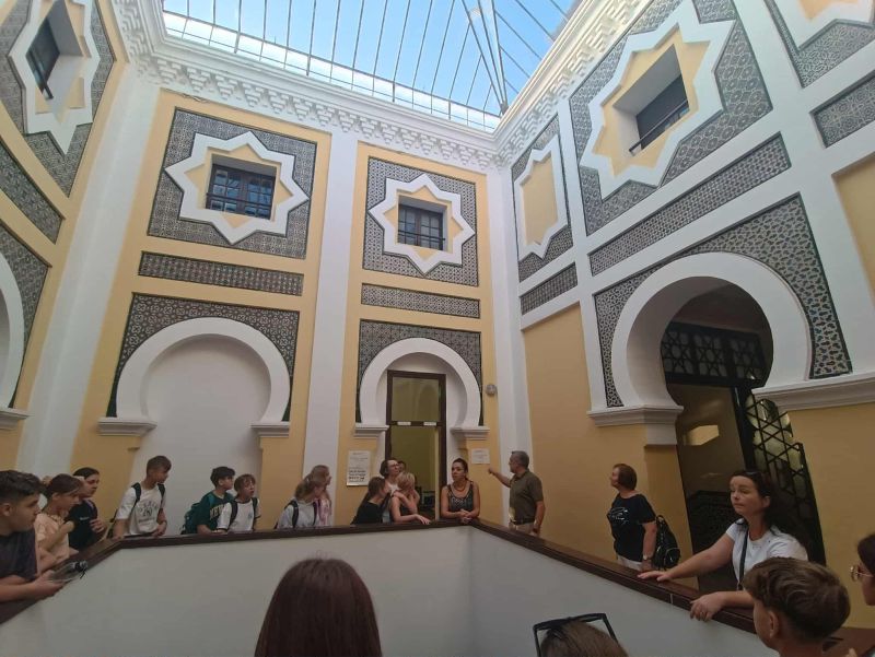 • Uczniowie ogląddają ekspozycję broni epoki sredniowiecza.