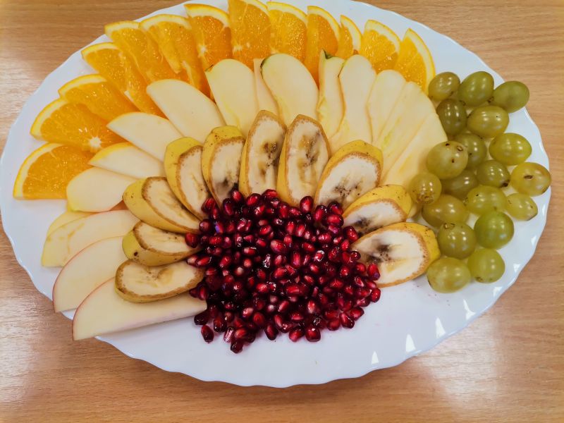 • 10. Kolorowa sałatka - kompozycja owocowa na talerzu.