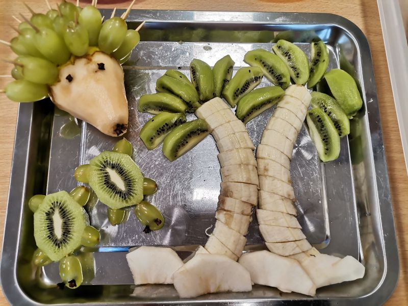 • 14. Owocowa kompozycja - palmy i zwierzątka na talerzu.