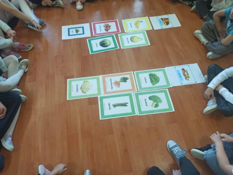 • 19. Zabawa dydaktyczna - dzieci seregują i liczą warzywa.
